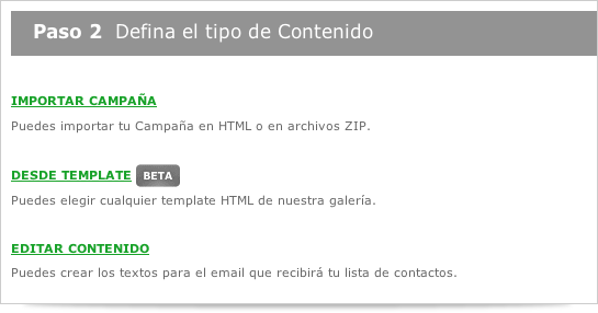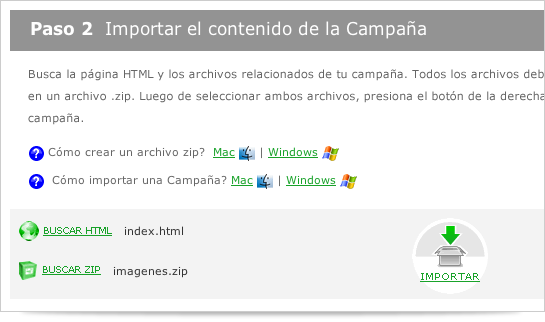Para importar tu campaña maquetada en HTML, debes importar dos archivos distintos: por un lado, el HTML en sí mismo y por el otro, todas las imágenes que forman parte del HTML en un archivo .zip Un archivo ZIP contiene uno o más archivos que han sido comprimidos. Si no tienes instalado el programa para comprimir archivos Winzip en tu computadora, lo puedes descargar desde este link: http://www.winzip.com/downwzeval.htm Si tienes dudas sobre como armar el archivo .zip consulta “Cómo crear un archivo zip con las Imágenes”. Para importar tu email template: 1.- Haz click en Crear Nueva Campaña, Campaña de Email, Completa la información básica y en tipo de campaña no olvides elegir la opción HTML. 2.- Luego ve al botón de Siguiente Paso. Allí elige la opción de Importar Campaña . Allí podrás cargar el HTML y las imágenes en archivo .zip. 3.- Una vez que hayas hecho esto, la imagen de una caja con una flecha que estaba en blanco y negro que dice Importar se pondrá de color y podrás visualizar la campaña. Para continuar, haz clic en siguiente paso. ¿Te ha gustado? Compártelo Posts relacionados: Trueque y comercio actual: por qué volvió, cómo funciona y cómo aprovecharlo con Marketing Digital Qué es CPM y por qué puede cambiar la forma en que mides tu publicidad digital Ventas consultivas: convierte conversaciones en cierres (sin presionar al cliente) Etiquetas: Email Marketing, HTML, Recomienda al autor ¿Quieres ser un autor invitado? Envíanos tus artículos. Cancelar la respuesta Resuelve Captcha*