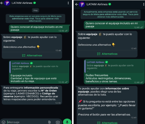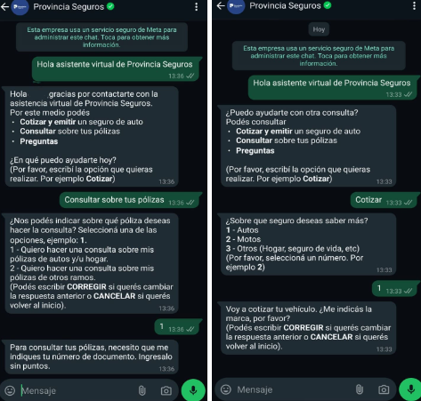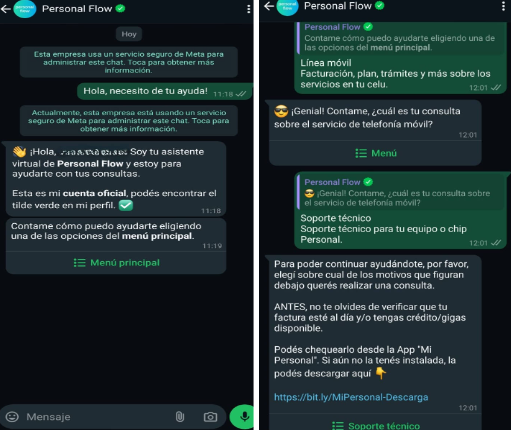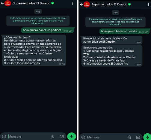 Hoy en día la comunicación por WhatsApp es uno de los pilares fundamentales de las empresas ya que facilita el ida y vuelta con sus clientes y permite llevar a cabo estrategias de marketing y publicidad. Una de las funciones más importantes de esta tecnología es la de Chatbots de WhatsApp. Pero, ¿qué es un Chatbot de WhatsApp? Se trata de una herramienta de automatización de mensajes basada en inteligencia artificial que permite interactuar con clientes mediante bots, atendiendo sus consultas en tiempo real de manera personalizada y ahorrando recursos. A continuación te dejamos un listado con los mejores ejemplos de Chatbots de WhatsApp para que puedas descubrir sus beneficios y te sirvan de inspiración. ¡Comencemos! 🙂 Chatbots de WhatsApp. Tipos de uso La versatilidad de los Chatbots le posibilita a las empresas adaptarlos para distintos rubros y tareas, entre las que se destacan: 1. Atención al cliente y soporte Los chatbots para la atención al cliente y soporte técnico de WhatsApp permiten atender todo tipo de consultas y ofrecer respuestas rápidas, mejorando así la experiencia de usuario y eficiencia de los servicios. Entre sus soluciones, se encuentran las de: Brindar soporte 24/7 Atender consultas, reclamos e incidencias en cualquier momento, por fuera de las jornadas de atención al público normales y habituales. Proporcionar información básica Podrás dar detalles sobre tus productos y tu negocio, como características, precios, horarios, ubicación, guías o manuales de configuración y la que consideres necesaria. Facilitar la redirección con el equipo técnico Funciona a la perfección como un canal de transición hacia consultas personalizadas y óptimas con los miembros de las empresas. Así lo implementa Personal, empresa de telecomunicación de Argentina: 2. Ecommerce Si te dedicas a las ventas en internet, necesitas implementar un chatbot de WhatsApp para ecommerce ya que está diseñado para interactuar con prospectos y clientes durante todo el proceso de ventas. En concreto, vas a poder: Mostrar tus productos detalladamente Podrás brindar información de manera automática sobre sus características, funcionamiento, beneficios, precios, formas de pago, tiempos de entrega y mucho más. Guiar en el procesos de compra Vas a poder indicar las formas de pago, la posibilidad de abonar en cuotas, los recargos y cómo generar facturas, además de guiarlos en el proceso de compra por sistemas externos o integrados. Recomendar productos A través del análisis de comportamiento de la herramienta vas a poder ofrecer sugerencias personalizadas de los productos que más le interesen a tus clientes, aumentando considerablemente las posibilidades de ventas. Notificar sobre el estado de la compra Informar acerca de la preparación del producto para ser enviado, seguimiento, cercanía del lugar de destino y entrega, como así también inconvenientes durante todo el trayecto. Atender consultas post-ventas Responder rápida y automáticamente preguntas sobre cambio o reparación de un producto y dudas sobre el proceso de devolución. De esta manera lo aplica El Dorado, Supermercado Online de Uruguay: 3. Marketing y Publicidad Si trabajas en este sector, contar con un chatbot de WhatsApp para marketing y publicidad es una de las mejores soluciones para automatizar procesos que, muchas veces, resultan tediosos y poco efectivos. Con este tipo servicio vas a tener un abanico de posibilidades amplio, entre las que se destacan: Recopilación de datos y generación de Leads Recolectar información acerca del comportamiento de quienes interactúan con tu negocio mediante este canal, lo cual permite segmentar los contactos así generar campañas personalizadas, aumentando las posibilidades de obtener leads y concretar ventas. Automatización de Campañas Programar y ejecutar campañas de marketing de forma automatizada, enviando mensajes promocionales, descuentos o actualizaciones a los clientes según sus propias necesidades, todo con un enfoque personalizado que te va a permitir tener mayores tasas de conversión. Seguimiento de clientes Conocer las preferencias de tus clientes, su nivel de satisfacción y la manera en que se relacionan con tu negocio de modo que puedas generar un historial de navegación y así optimizar las futuras campañas, enviar recordatorios, recomendaciones y promociones exclusivas enfocadas en sus comportamientos y preferencias. Así lo implementaron los especialistas en empresas como Movistar Colombia y Kikuu: 4. Turismo Los chatbots de WhatsApp para turismo son una de las opciones más potentes para mejorar el intercambio entre las agencias de viaje, hoteles o aerolíneas y los clientes. Algunas de las soluciones más relevantes que pueden garantizar los chatbots de WhatsApp son: Otorgar información rápida y personalizada Los clientes pueden consultar información sobre destinos, hospedajes, días y horarios de vuelos, paquetes promocionales que dispone la empresa, precios, condiciones del servicio y métodos de pago, todo de acuerdo a las opciones que brinda la herramienta y a las preferencias que se recopilan en tiempo real de los usuarios. Gestionar la adquisición de los servicios Generar reservas en hoteles, vender pasajes o paquetes de viajes de manera guiada y a través de los medios que el cliente pretenda seleccionar según las opciones configuradas (tarjetas de crédito o débito, transferencia bancaria, moneda local, moneda extranjera, mediante plataformas externas o por sistemas integrados, etc.). Hacer recomendaciones personalizadas Segmentar clientes y enviar a cada uno de ellos sugerencias de destinos, paquetes de viajes o promociones que se adapten a sus intereses. Acompañar al cliente en su viaje Gestionar el itinerario del cliente durante toda su experiencia, desde enviarle recordatorios sobre un vuelo hasta notificarle acerca de próximas actividades programadas dentro de su paquete, mejorando la satisfacción del cliente c
