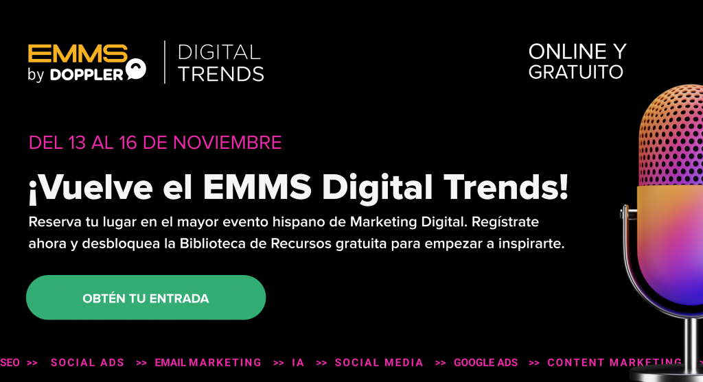 Si te interesa asistir al evento, se ofrecen cuatro tipos de entradas con distintos beneficios con las que puede reservarse un lugar en el tan esperado EMMS Digital Trends. Puedes chequear las diferentes entradas en el sitio oficial